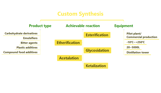 En el campo de la labranza profunda del producto químico del azúcar por muchos años, se especializa en los productos químicos finos del azúcar, la personalización farmacéutica de los intermedios, la síntesis y la producción industrial, tiene un número de patentes en el campo. Particularmente bueno en: esterificación, eterificación de bencílico, glucósidos, reacciones de isopropílico y así sucesivamente.